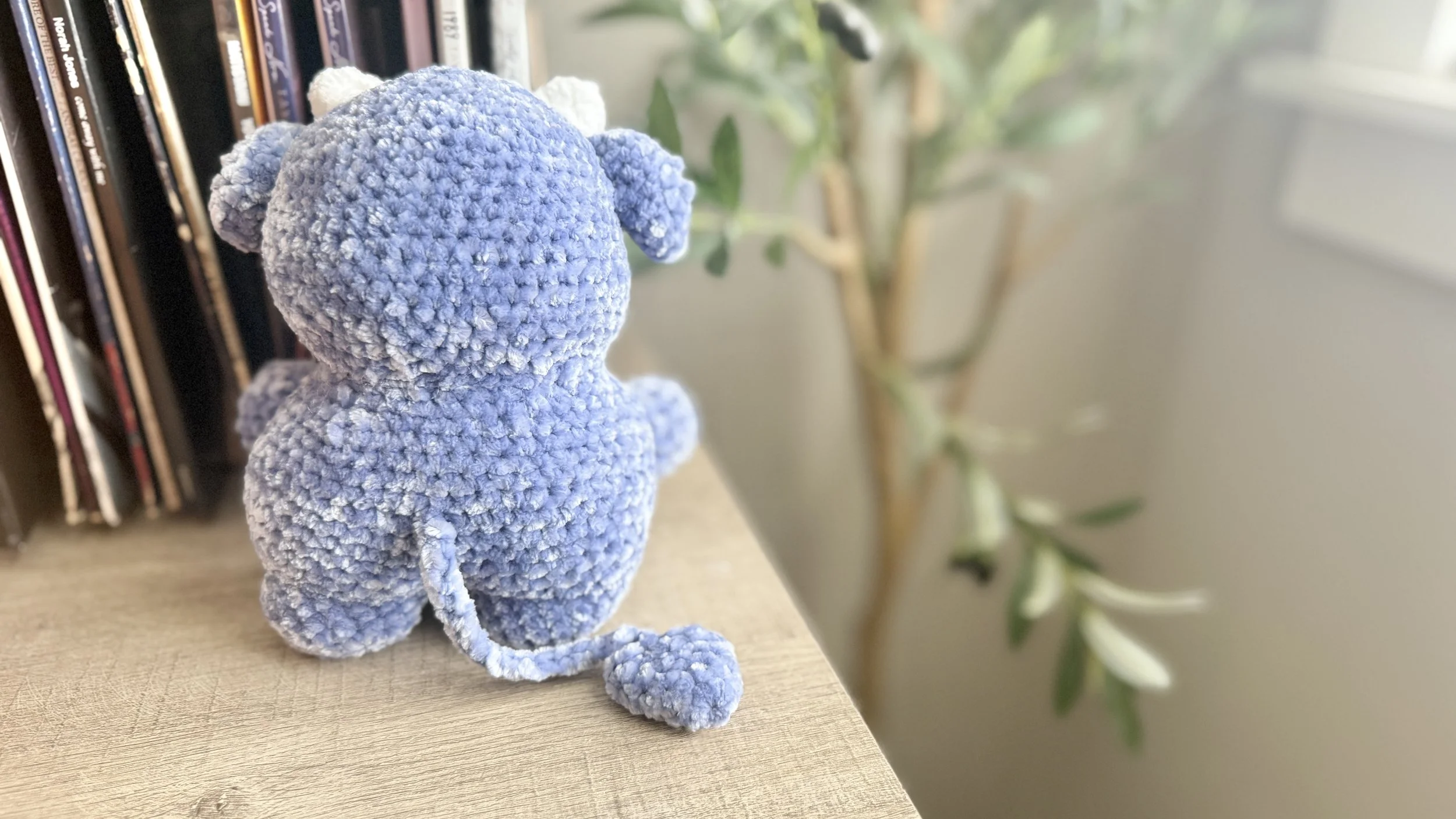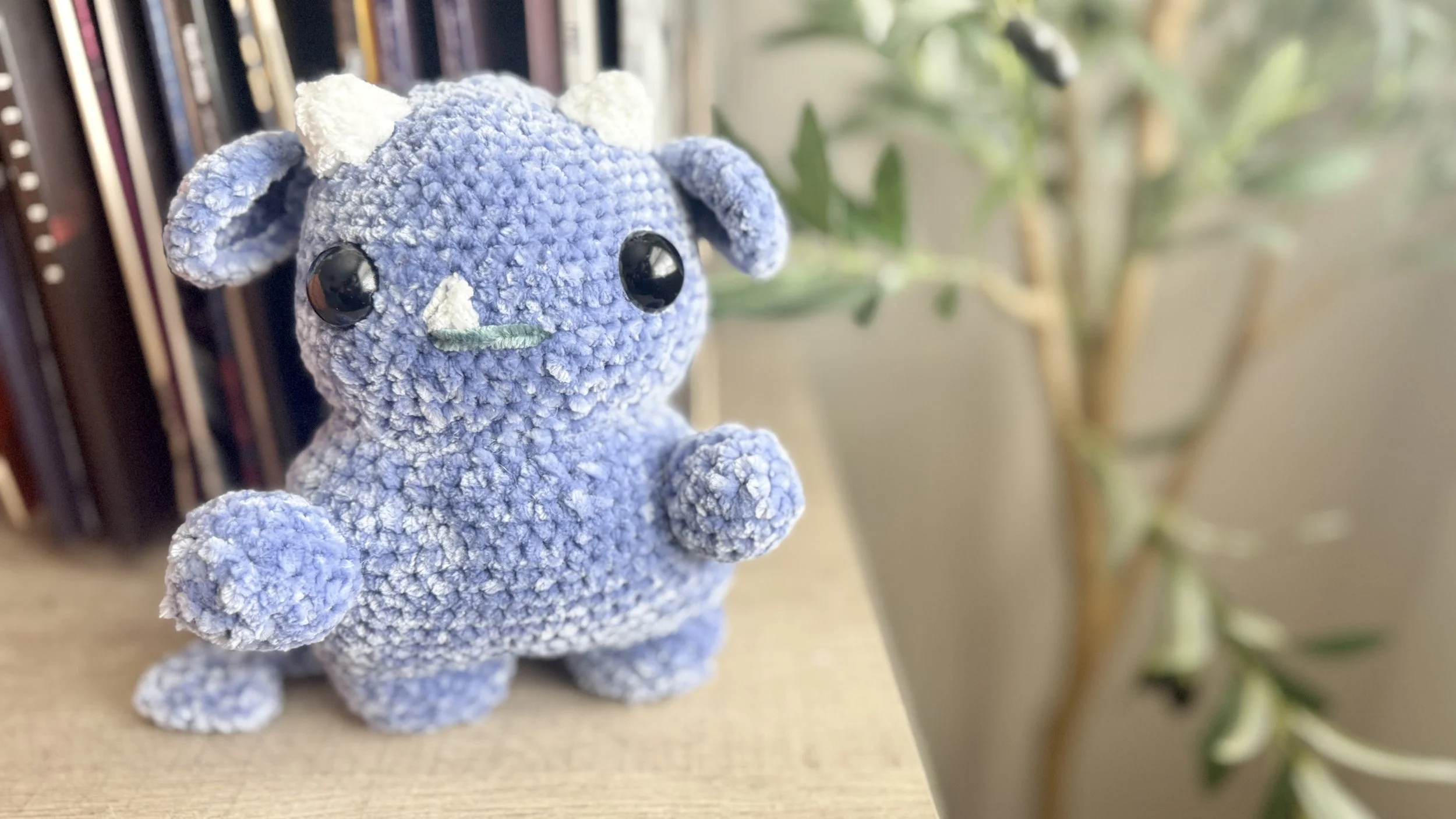 I bought the pattern for this Chubby Devil Monster by Handmade By Lexii on Etsy almost a year ago and only just got around to doing it. I ended up making three of them, each in a different color and slightly different mouth style. This one was for my third daughter, Clara, who is 8 years old. Together, we named him Moonlight! I've got my eyes set another of her patterns for these adorable baby dragon rings. I've already started my next crochet project so it'll have to wait a little while.