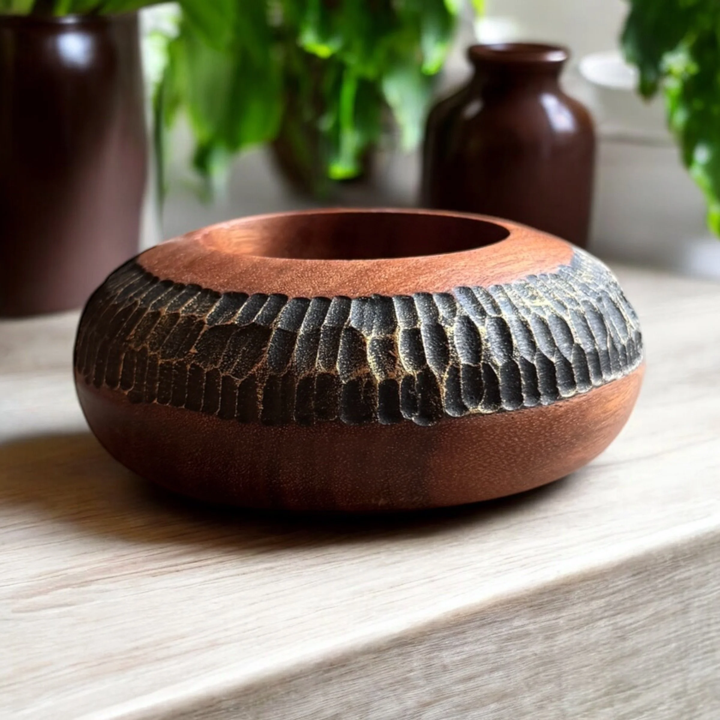 Every turned piece begins with the raw beauty of nature; grain traced like rivers, forms shaped by time itself.